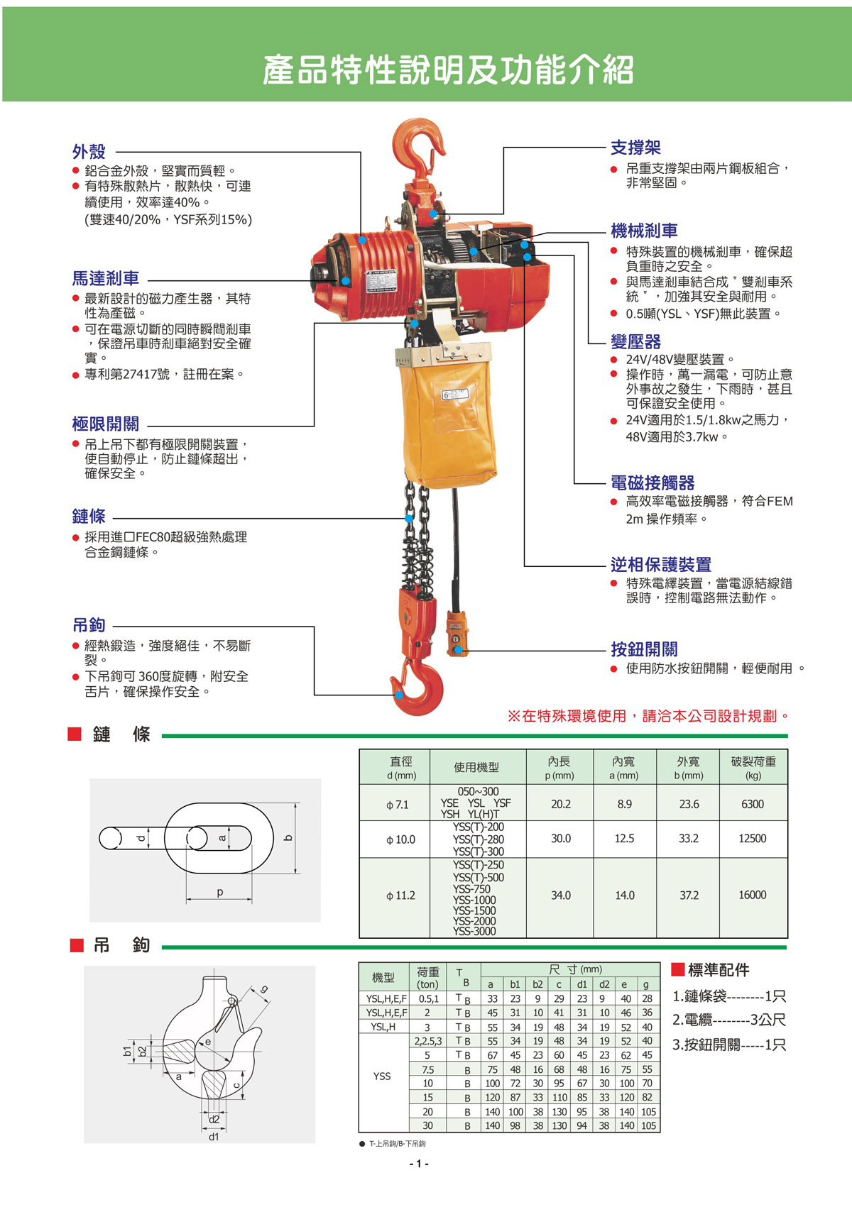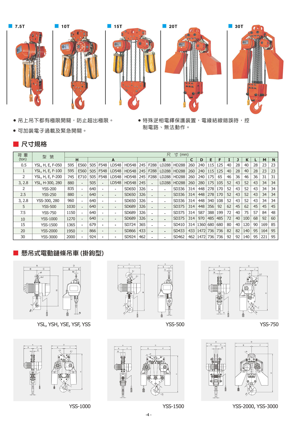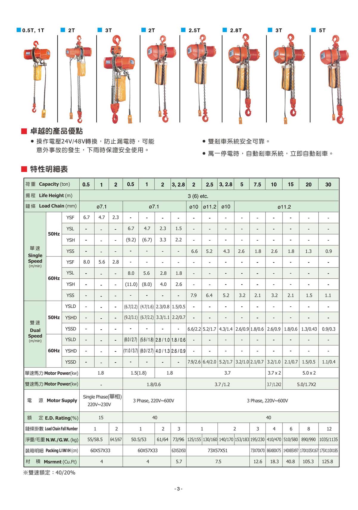 低舉型電動鏈條吊車 (YLT/YHT/YST)