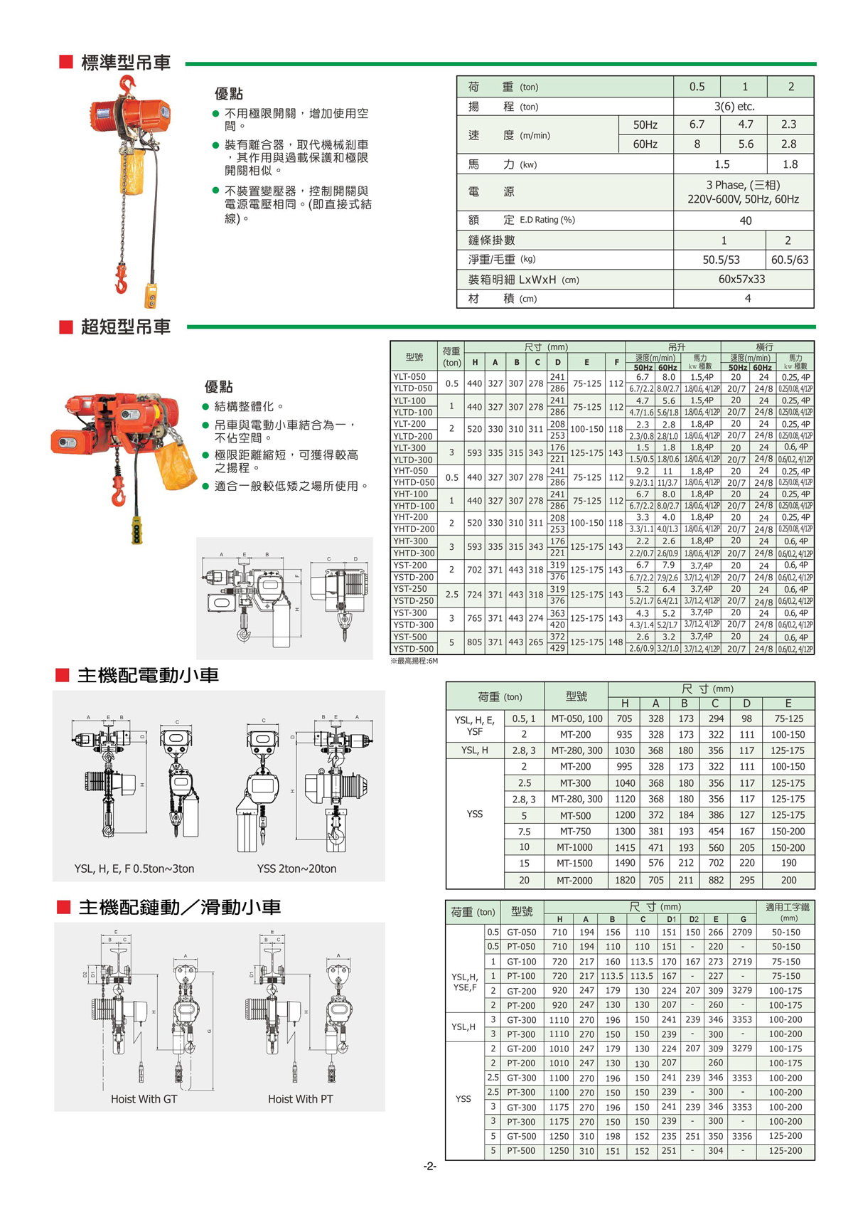 低舉型電動鏈條吊車 (YLTU/YHTU/YSTU)