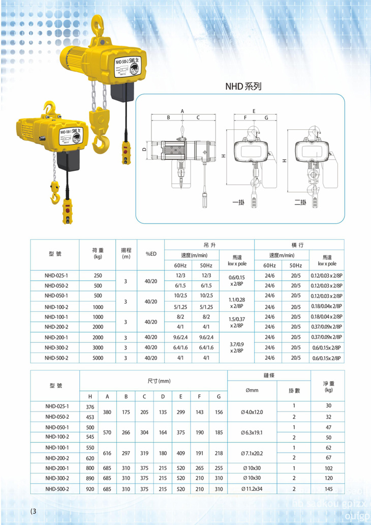 低舉型電動鏈條吊車 (YLT/YHT/YST)