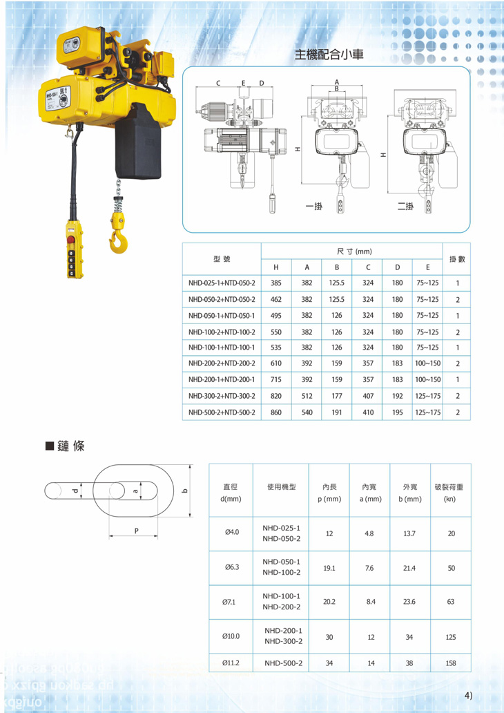 低舉型電動鏈條吊車 (YLTU/YHTU/YSTU)
