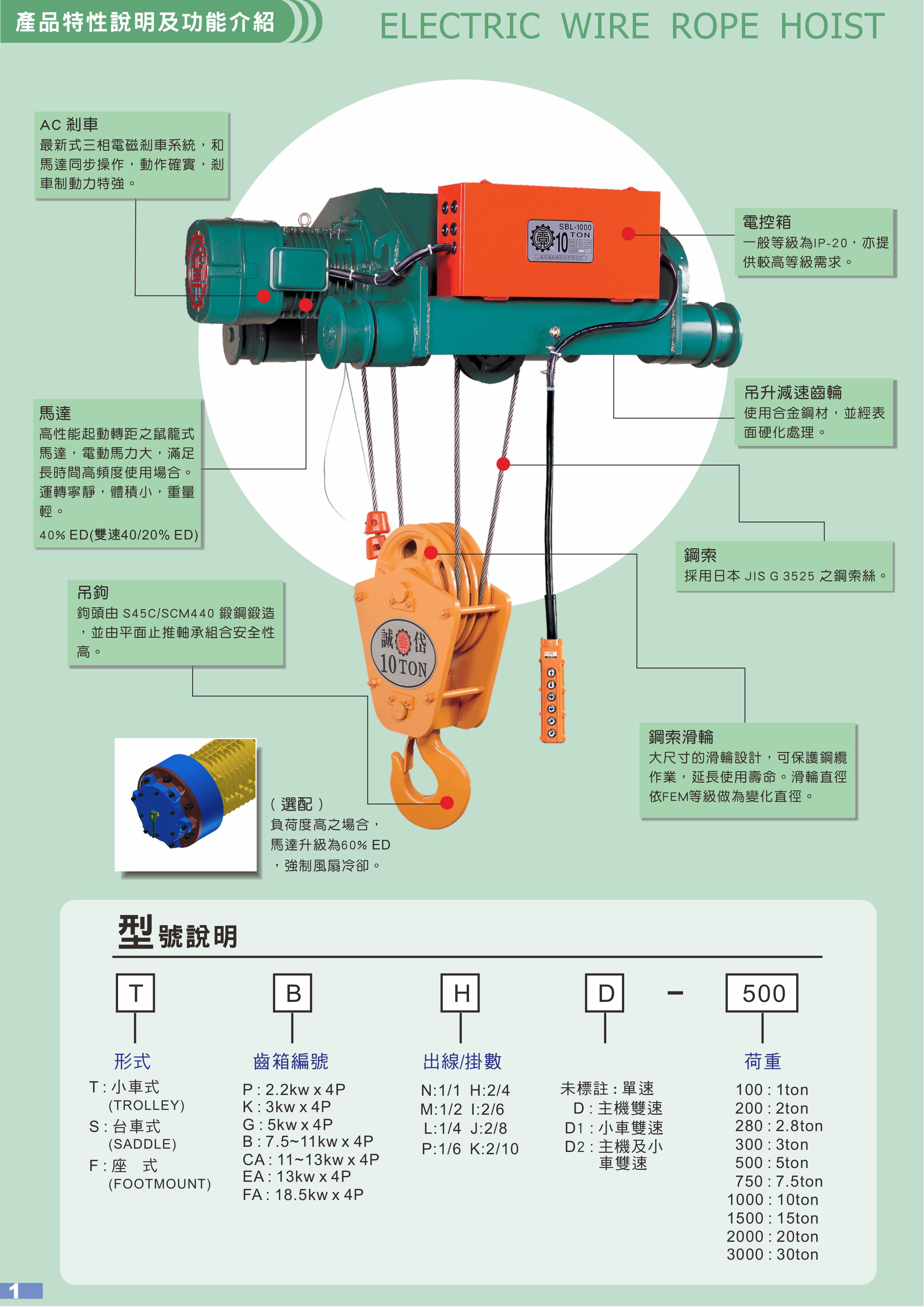 亞規電動鋼索吊車(AC剎車/AB系列)